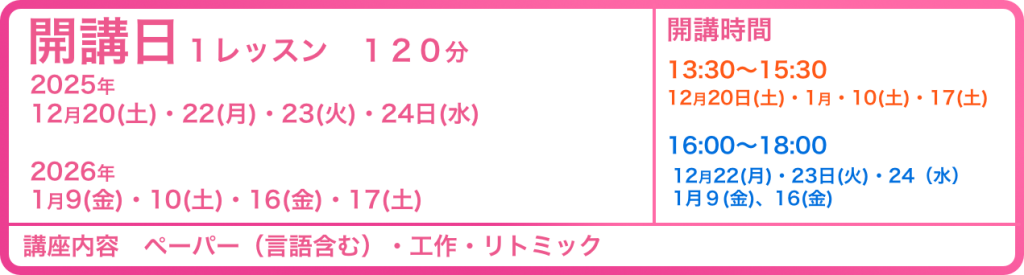 以下、冬期講習の詳細となります。